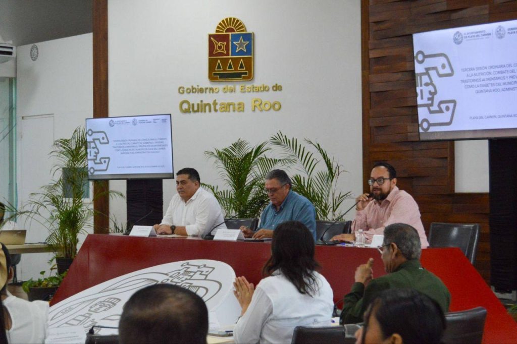 Durante la sesión se presentaron los informes de las instituciones de salud que integran el Consejo, en cumplimiento de la Ley de Fomento a la Nutrición y el Combate al Sobrepeso, la Obesidad y los Trastornos de la Conducta Alimentaria del Estado de Quintana Roo a cargo de Alexandra Cárdenas, subdirectora de Salud Física y Mental.
