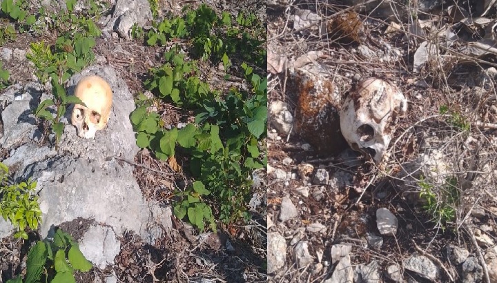 Según los primeros reportes, se trata de dos cráneos humanos ubicados a corta distancia uno del otro. Por las características observadas en el sitio, se presume que son restos relativamente antiguos. Esta condición ha llevado a especular que los cráneos podrían haber sido extraídos del panteón local y utilizados en algún tipo de ritual, aunque esta hipótesis aún no ha sido confirmada.