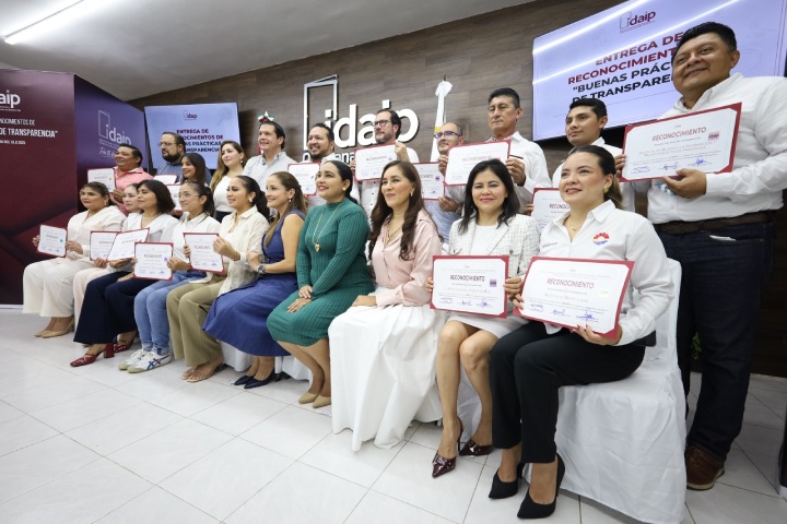 El IDAIPQROO entrego reconocimientos por cumplimiento de obligaciones de transparencia a 14 entes públicos; órganos autónomos y presidencias municipales de Othón P. Blanco; Bacalar; Felipe Carrillo Puerto y a los enlaces de transparencia de los municipios del Estado.