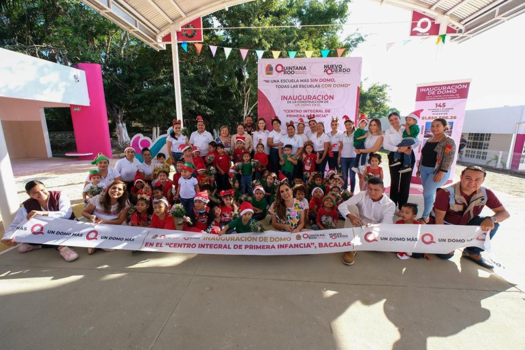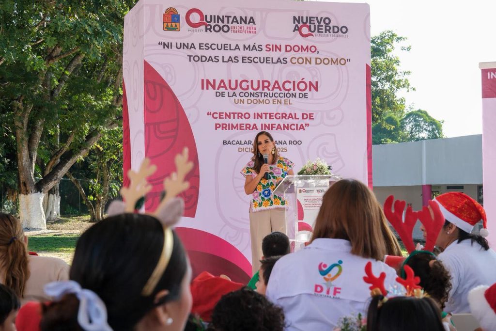En respuesta a peticiones de madres de familia, cuidadoras, trabajadoras y trabajadores, la gobernadora Mara Lezama Espinosa inauguró un nuevo domo en el Centro Integral de Primera Infancia (CIPI) de Bacalar, obra ejecutada por la Secretaría de Obras Públicas (SEOP) que fortalece infraestructura segura para la primera infancia.