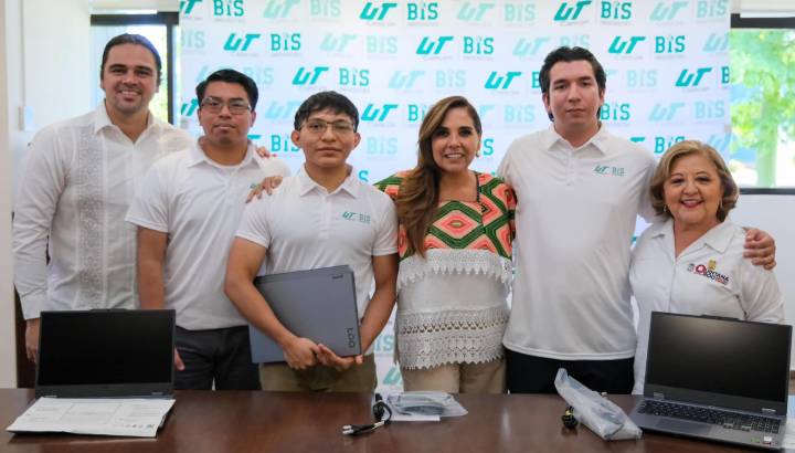 La gobernadora Mara Lezama Espinosa entregó equipos de cómputo a estudiantes de la Universidad Tecnológica de Cancún, quienes participaron en el Hackatón: Come Datos 2024 con el proyecto “Plataforma de Evaluación Ciudadana”, el cual despertó gran interés para implementarlo dentro del Gobierno del Estado.