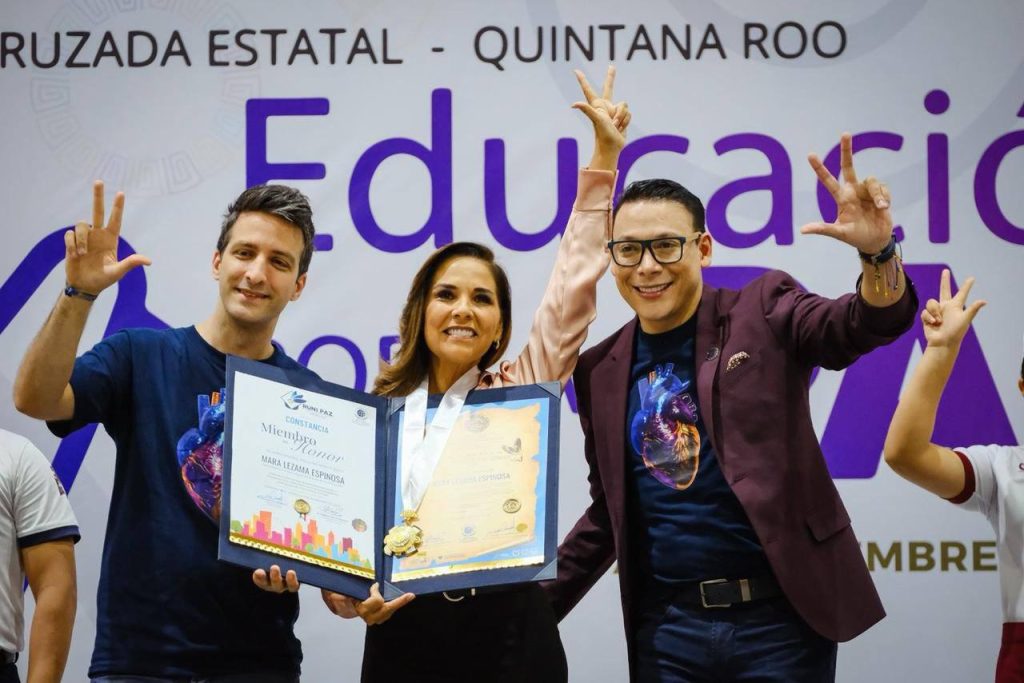 Ante más de 3 mil jóvenes reunidos con el Poliforum de Cancún, Mara Lezama recibió la presea “Mensajero de la Paz”, avalado por la Comisión Latinoamericana de Derechos Humanos, la primera y única en México de las 16 que se crearon en todo el mundo desde el año 2022.