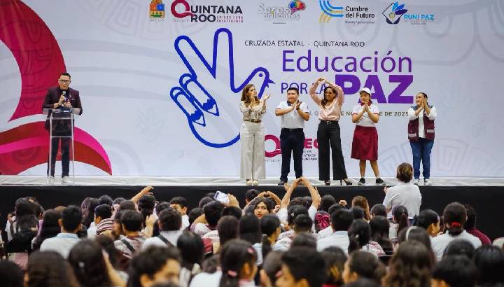 Al dirigirse a las y los asistentes, acompañada de la presidenta honoraria del Sistema DIF Quintana Roo, Verónica Lezama Espinosa, la titular del Ejecutivo subrayó que “construir la paz es tarea de todas y todos”, y que este proceso inicia en el interior de cada persona, mediante el desarrollo de la inteligencia emocional, el autoconocimiento y la empatía.