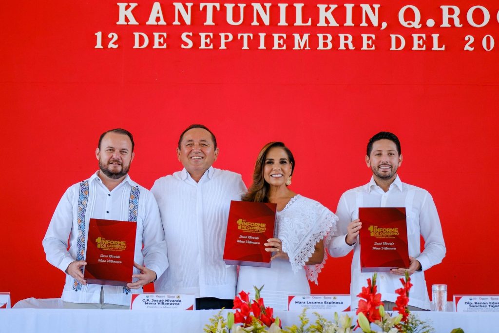 En esta cabecera del municipio de Lázaro Cárdenas, refugio de la cosmovisión maya que simboliza perpetuidad, grandeza y fuerza, reflejada en su pueblo y en sus bellezas naturales como la isla de Holbox, hogar del tiburón ballena, la gobernadora Mara Lezama Espinosa acompañó al presidente municipal Nivardo Mena Villanueva en la presentación de su Primer Informe de Gobierno 2024-2027.