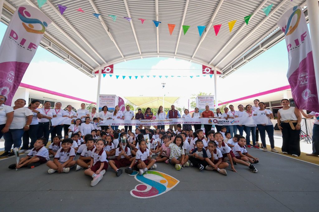 En un día especial para casi 500 niñas y niños, desde bebés hasta pequeñitos de preescolar de los CENDI 1 y 2 de Chetumal, la gobernadora Mara Lezama Espinosa les entregó sus respetivos domos completamente nuevos, construidos por este gobierno humanista con corazón feminista con más de 3.7 millones de pesos de dinero del pueblo que regresa al pueblo.