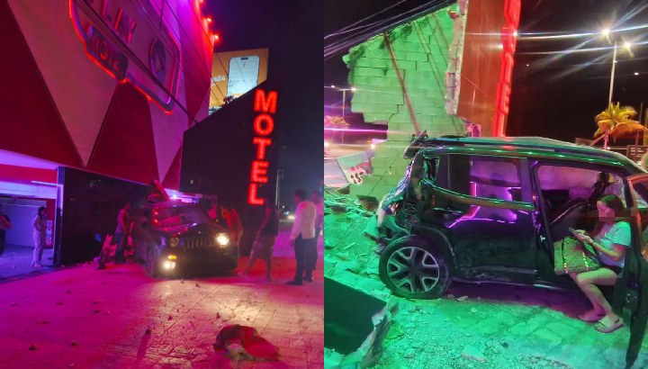 Una conductora perdió el control de su camioneta y chocó su automóvil contra el motel Play en el Bulevar Luis Donaldo Colosio de Cancún, la noche del domingo. Afortunadamente, el incidente sólo dejó daños materiales.