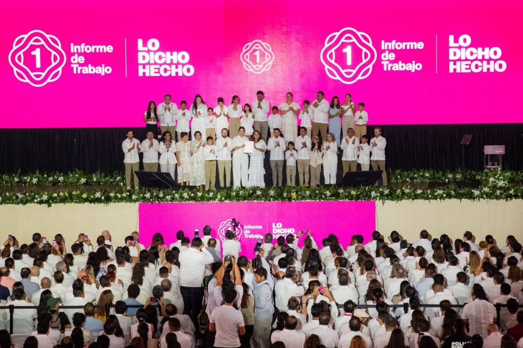 Por la mañana, en sesión solemne de Cabildo, la Alcaldesa entregó la glosa de su informe a los miembros del H. Ayuntamiento; posteriormente, se trasladó al Poliforum de la Unidad Deportiva “Playa del Carmen”, para dar cuenta de los logros obtenidos en su primer año de administración.