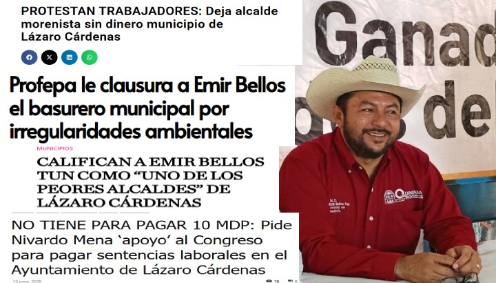 Emir Bellos Tun no solo dejó hecho un cochinero las calles del municipio de Lázaro Cárdenas que mal gobernó de 2021 a 2024, con basura con todos lados y peligro de contaminación en la Isla de Holbox, también dejó una puerqueza las finanzas municipales, donde tan solo hace unos días la Auditoría Superior de la Federación (ASF) le observó irregularidades durante su último año por un monto de casi 294 millones de pesos, y pese todo esto hoy cobra en el gobierno del estado como subsecretario de ganadería en la Sedarpe.