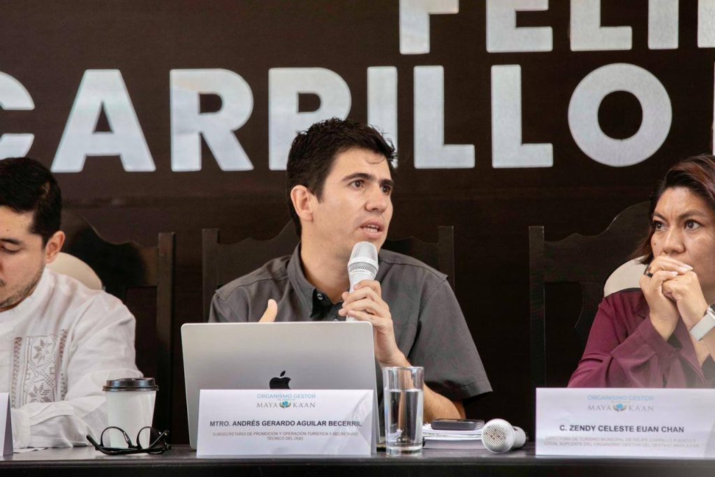 Esta primera sesión ordinaria del Organismo gestor del destino Maya Ka’an, estuvo encabezada por la directora de Turismo municipal Zendy Euan Chan en representación de la presidenta municipal Mary Hernández y por Andrés Gerardo Aguilar Becerril subsecretario de promoción y operación turística y secretario técnico del OGD.