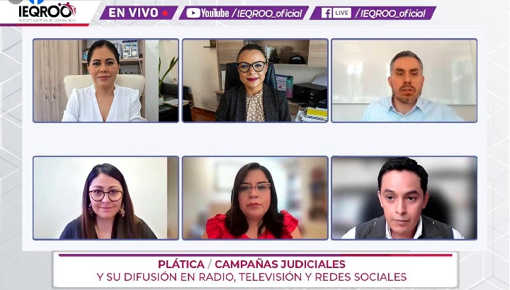 Con el objetivo de conocer la administración de los tiempos del Estado en radio y televisión, en el ámbito local, así como del uso adecuado de redes sociales durante el periodo de campañas electorales, en el marco del Proceso Electoral Extraordinario del Poder Judicial de Quintana Roo 2025, el Instituto Electoral de Quintana Roo, en colaboración con el INE y en alianza con el Colegio de Profesionistas en Comunicación del estado de Quintana Roo, se realizó de manera virtual la plática: “Campañas Judiciales y su difusión en radio, televisión y redes sociales”.