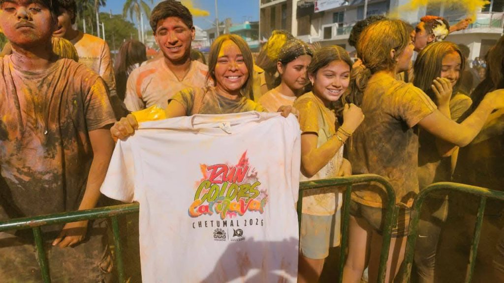 Con la participación de más de mil personas, entre niñas, niños, jóvenes y muchas familias, el Boulevard Bahía de la capital del estado se pintó de colores y resonó con buena música en la espectacular carrera Run Colors del Carnaval Chetumal 2026.