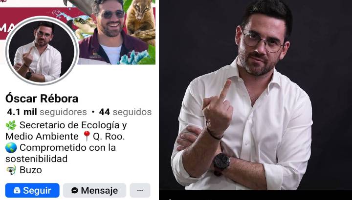 El secretario de Ecología y Medio Ambiente de Quintana Roo, Óscar Rébora Aguilera, captó polémicamente la atención de un sector del público quintanarroense por difundir en sus redes sociales una foto de perfil donde dedica corte de manga y dedo medio levantado a quienes la vieran, en medio de la campaña que realiza para promocionar su imagen personal aprovechando el cargo que ostenta.