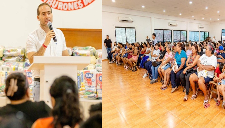 En su intervención Diego Castañón reconoció la importante laborar de las mujeres tulumnenses en el crecimiento del municipio y en el caso de las jefas de familia en el cuidado del hogar, por lo que refrendó su compromiso de continuar acercando mejores oportunidades en beneficio a su salud y el de sus familias a través de insumos alimenticios de calidad.