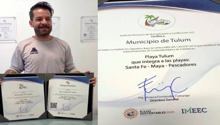 El municipio de Tulum reafirmó su compromiso con la conservación ambiental y la gestión responsable de sus zonas costeras al recibir, por cuarto año consecutivo, la certificación de Playa Platino, y por primera vez la certificación NOM 120 Bandera Blanca en modo de conservación.