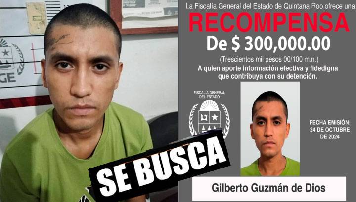 Gilberto Guzmán de Dios fue detenido por violar y arrebatar la vida a golpes a su hijastro de dos años en Cancún, escapó de la cárcel y se lo tragó la tierra desde el 19 de octubre de 2024, sin que haya sido de gran ayuda una ficha de recompensa de la Fiscalía General de Quintana Roo para recapturarlo, desprendiéndose de 300 mil pesotes.