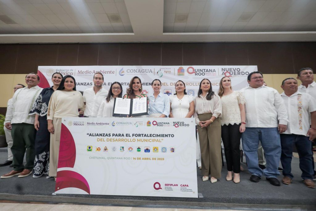 Además, junto a las alcaldesas y alcaldes de los otros municipios, la presidenta municipal de Othón P. Blanco firmó el Plan Maestro Municipal de Agua Potable, Alcantarillado, Saneamiento y Prevención de Inundaciones con CONAGUA, con lo que se sumá de manera activa al Plan Hídrico Nacional que impulsa la primera mujer Presidenta de México, Claudia Sheinbaum.