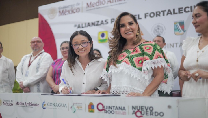 Además, junto a las alcaldesas y alcaldes de los otros municipios, la presidenta municipal de Othón P. Blanco firmó el Plan Maestro Municipal de Agua Potable, Alcantarillado, Saneamiento y Prevención de Inundaciones con CONAGUA, con lo que se sumá de manera activa al Plan Hídrico Nacional que impulsa la primera mujer Presidenta de México, Claudia Sheinbaum.
