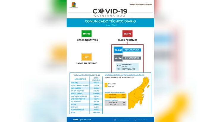 Con este resultado, el acumulado total de dosis aplicadas en Quintana Roo, de enero de 2021 al corte de las 13 horas de este 15 de febrero de 2022, es de 2 millones 631 mil 354,de las cuales 263 mil 875 corresponden a dosis de refuerzo.